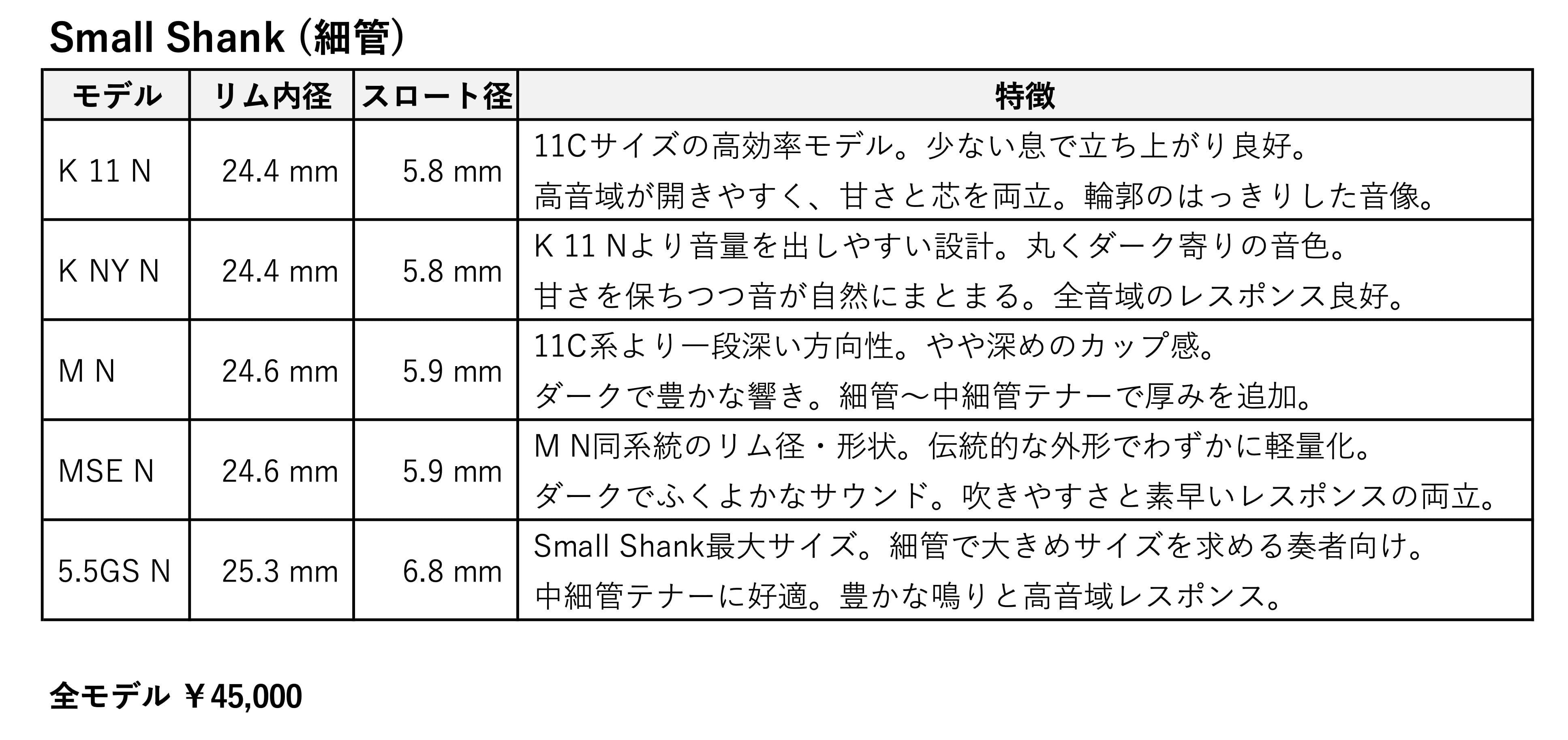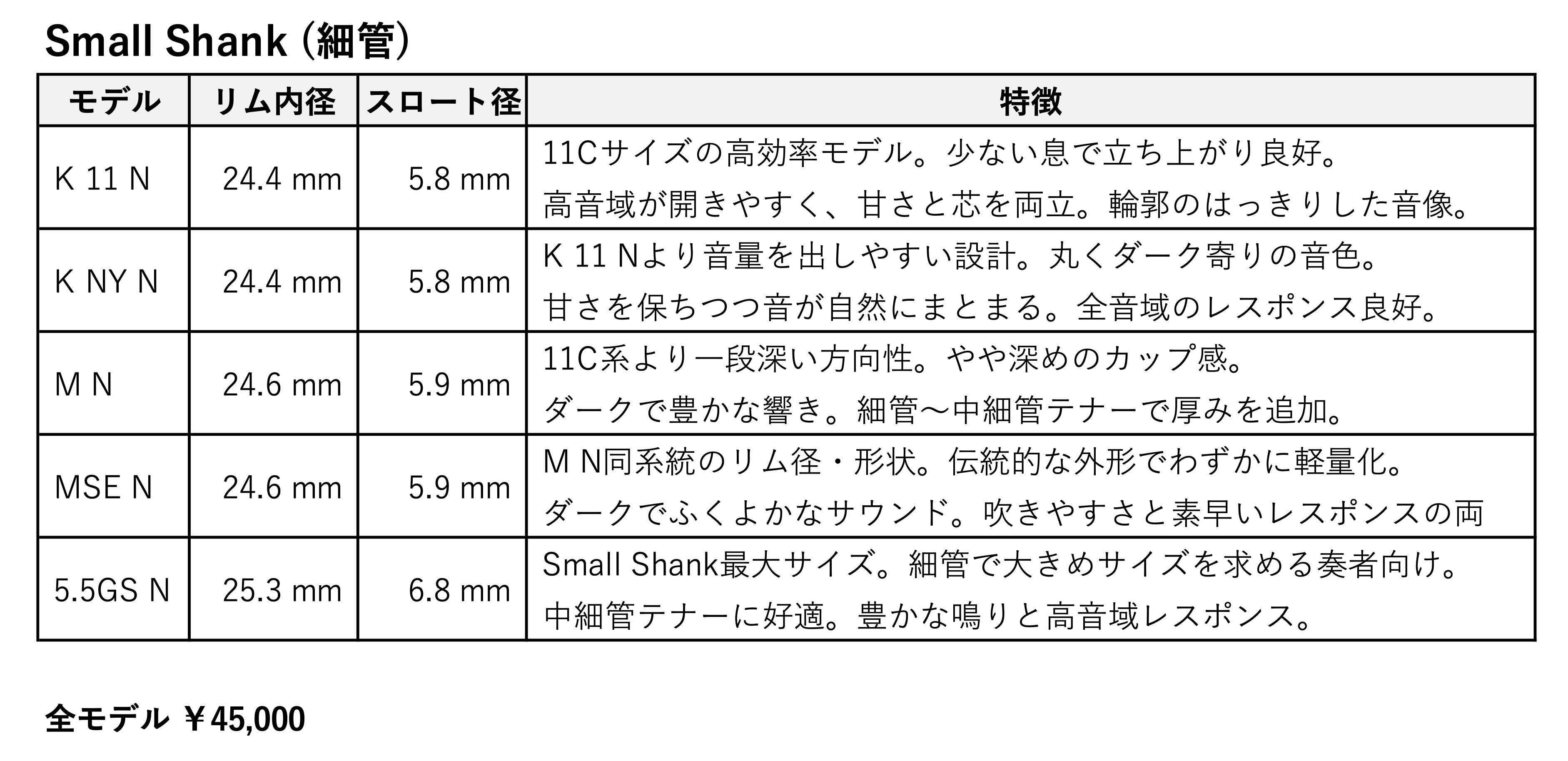 • 細管で「もう少し大きいサイズ」を求める奏者向けに開発