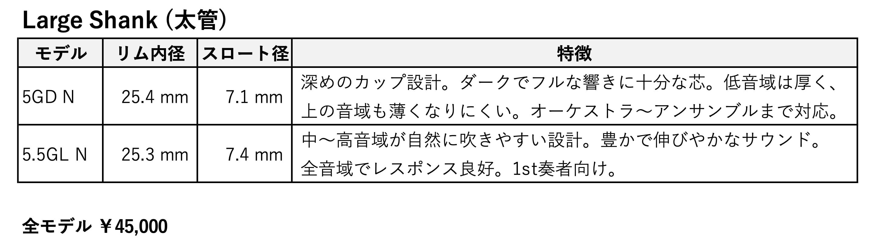 • Bach 5G付近のリムサイズ(より快適なリム、やや深めのカップ、わずかに増した質量)